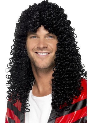 €33.0080’s Wet Look Pop Star Wig, Tight Curls, Black